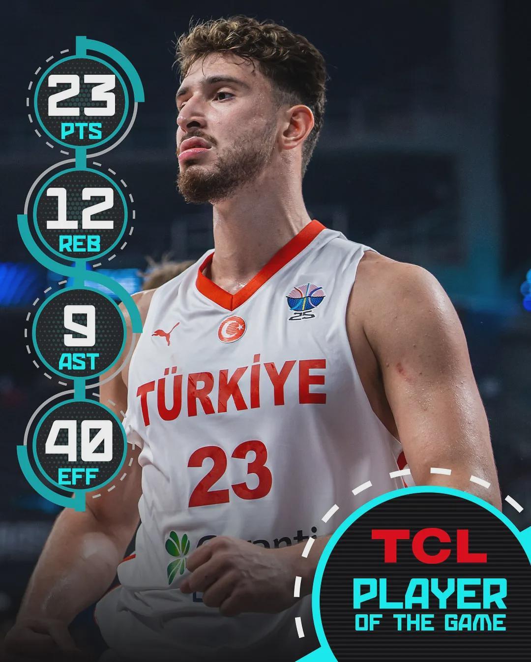 第三个比赛日,内线群星集体爆发。申京在土耳其92-78大胜捷克的比赛中9投8中,砍下23分12篮板9助攻2封盖。NBA球迷或许早就对这样的准三双审美疲劳了。但在欧洲杯,自1995年以来,整整三十年也只出现过3次三双。